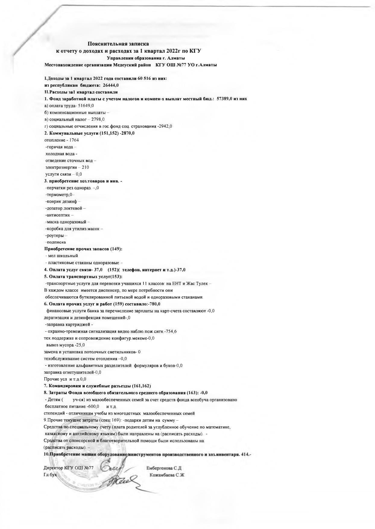 КГУ «Общеобразовательная школа №77» Управления образования г.Алматы